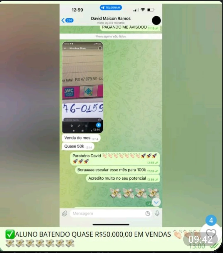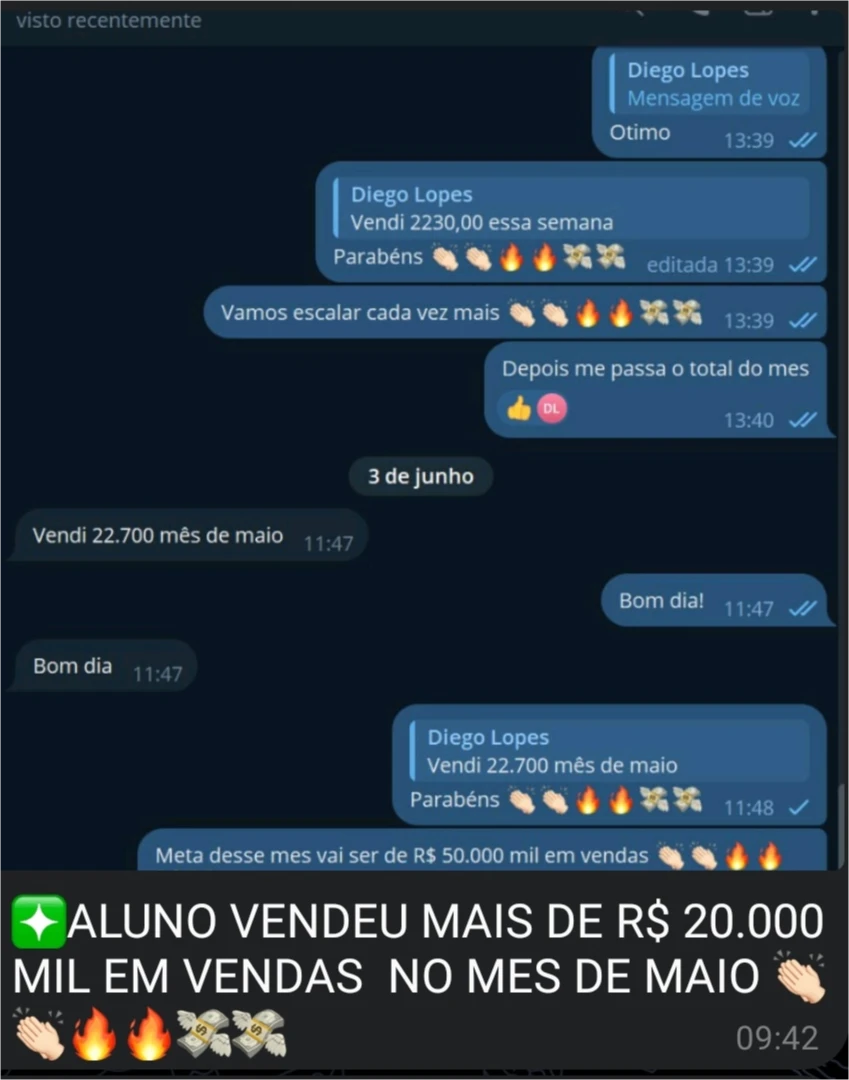 Aluno fazendo R$50.000.00 em vendas!
