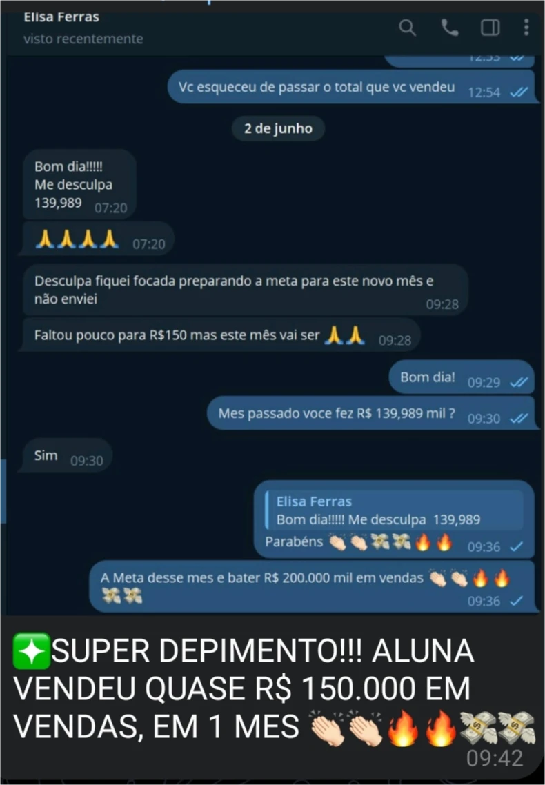 Aluna vendeu quase R$ 150.000,00 em um mês!